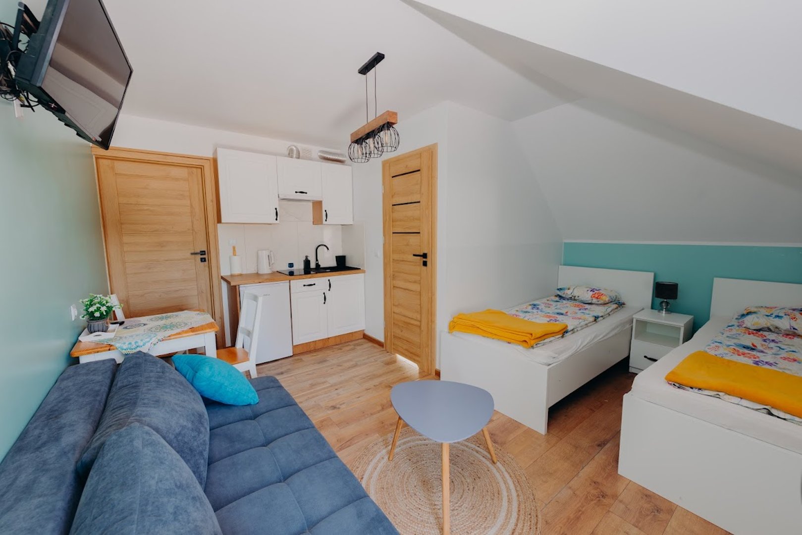 Comfortable Mint Room Apartment with a bathroom and kitchenette. Number of guests this 2 to 4. It includes 2 single beds and sofa bed.
