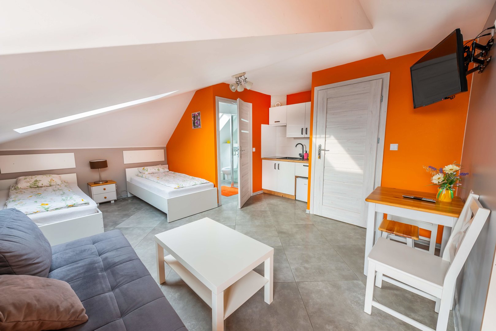 Pokoj Jesienny 4-osobowy z łazienką i aneksem kuchennym wygodny i komfortowy.